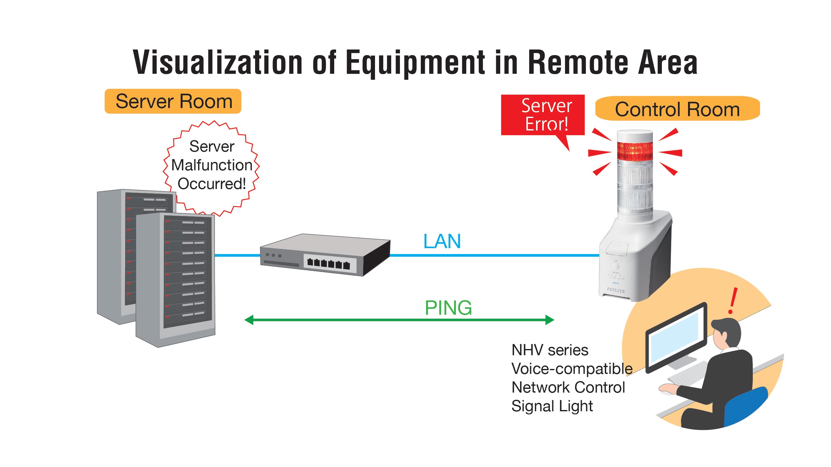 With PATLITE's Ethernet-compatible signal tower NHV series, troubleshooting becomes easy. It can monitor up to 24 IP addresses and promptly notify you of any errors with both light and sound.